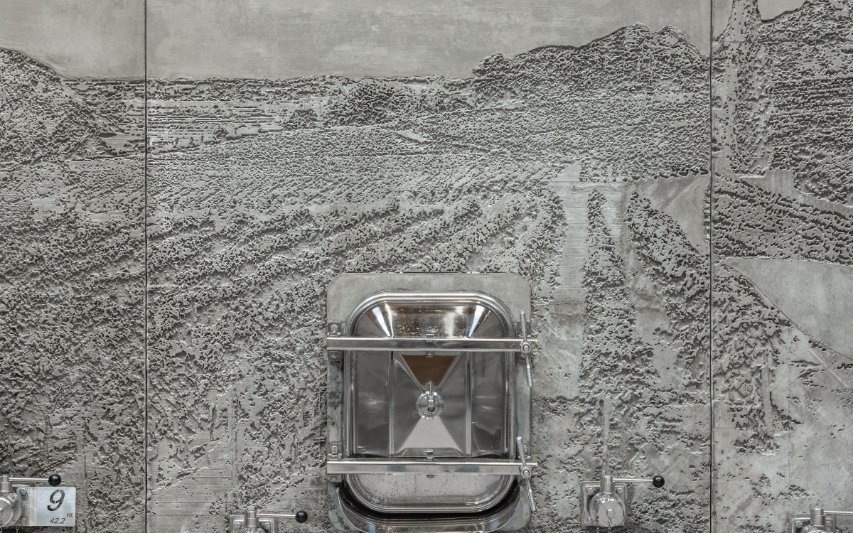 Même aujourd’hui, plus d’un an après, il n’y a pas une fois où je n’entre pas dans le cuvier sans m’arrêter. La lumière évolue au fil de la journée, révèle des choses différentes le matin, le soir. Le paysage se reflète sur les cuves.